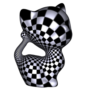 The input mesh has 20k faces. The computational time is less than 1 seconds on a PC with 3.0 GB of RAM, 3.60 GHz CPU. The data set and the source can be downloaded.